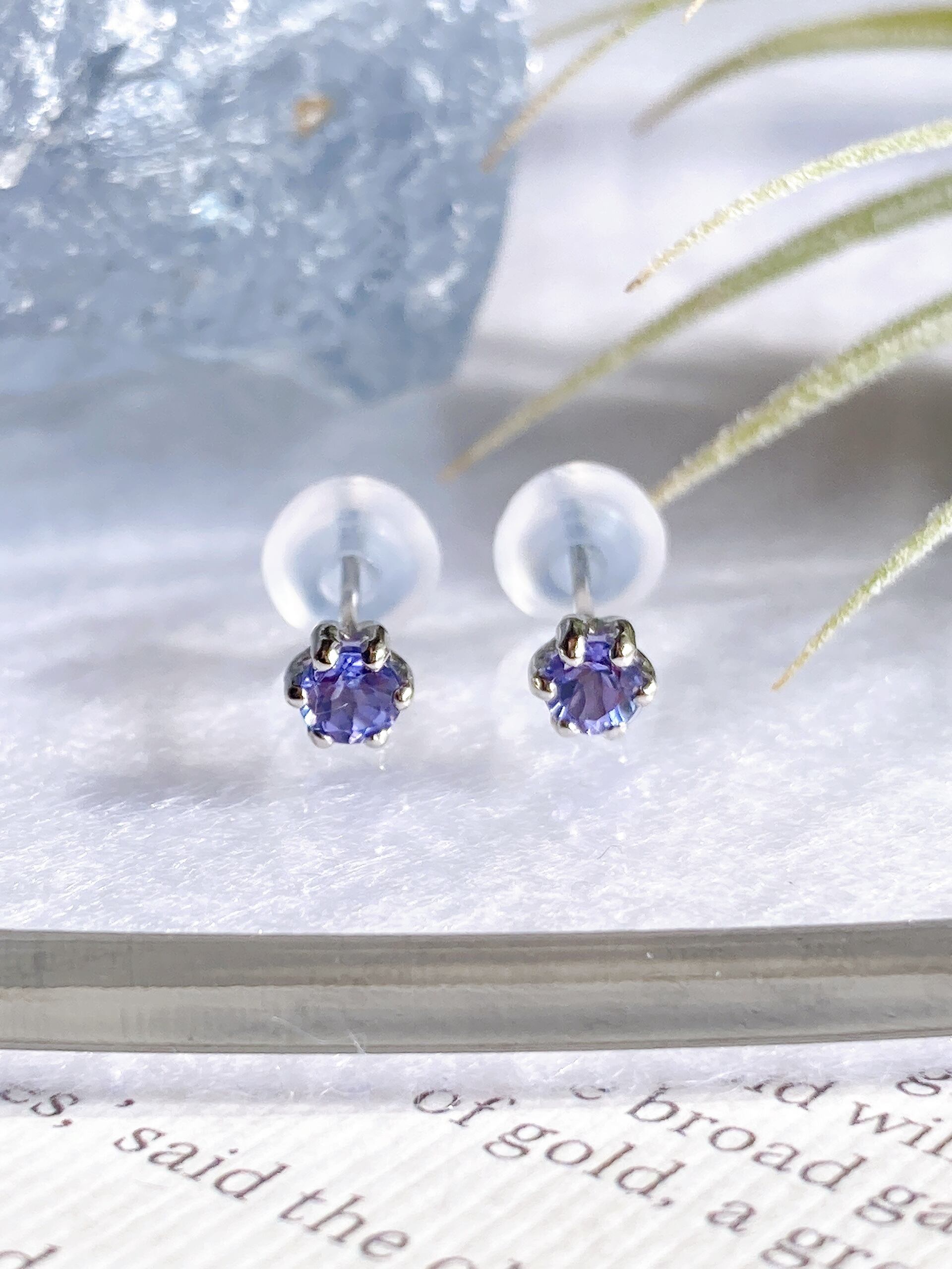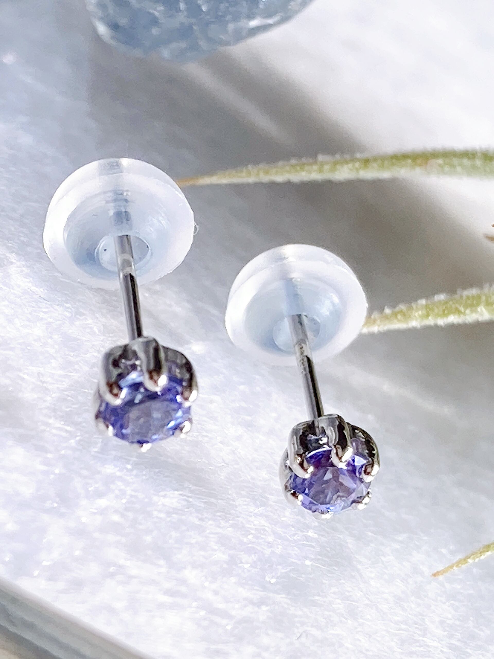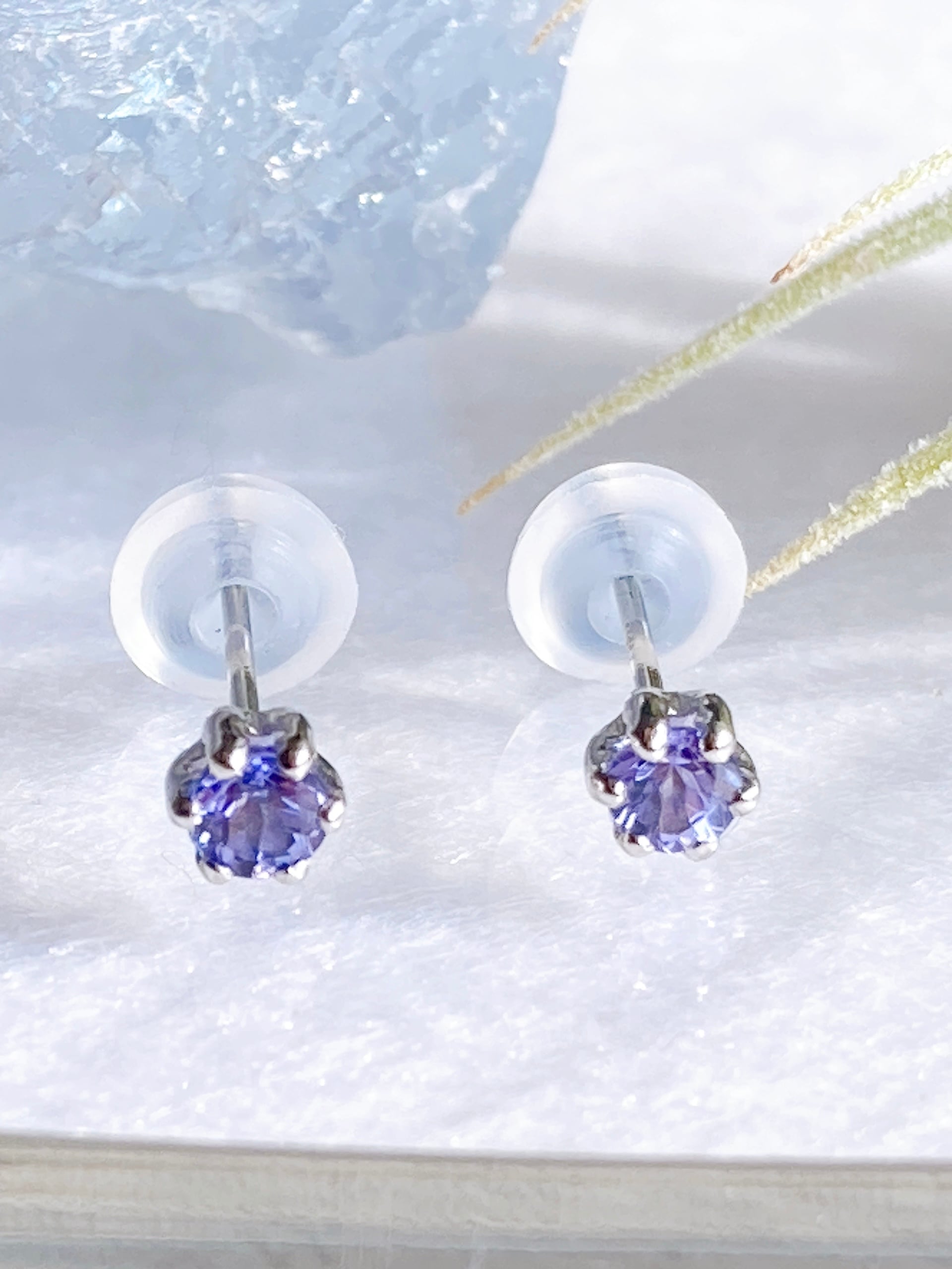 澄んだ青と、ほんのりと紫を帯びた色彩が美しい、タンザナイトのピアスです。