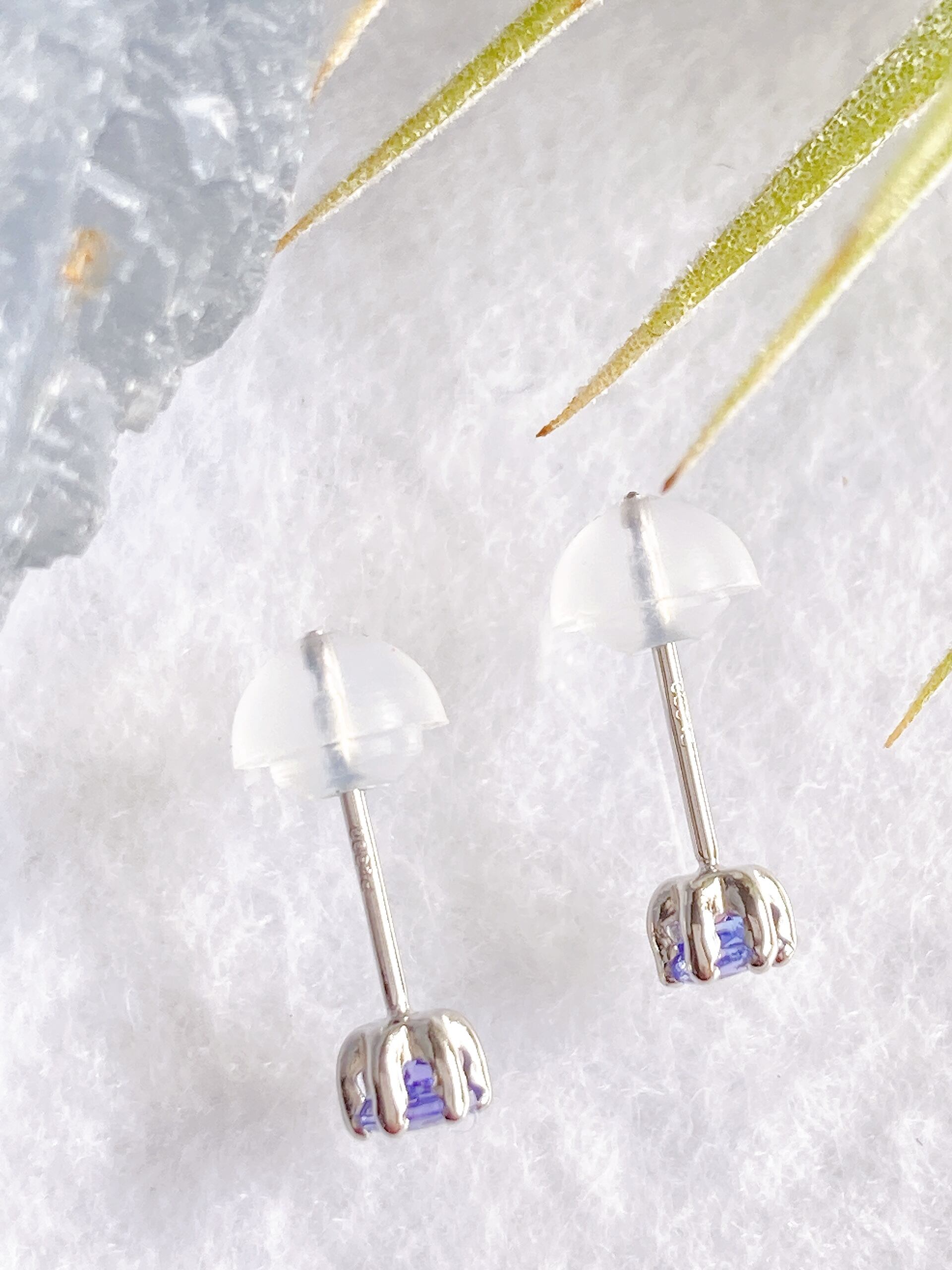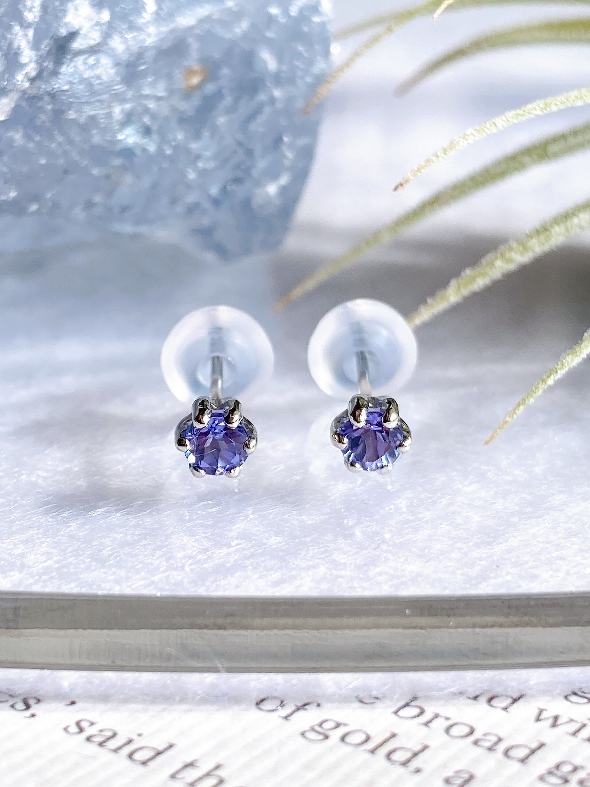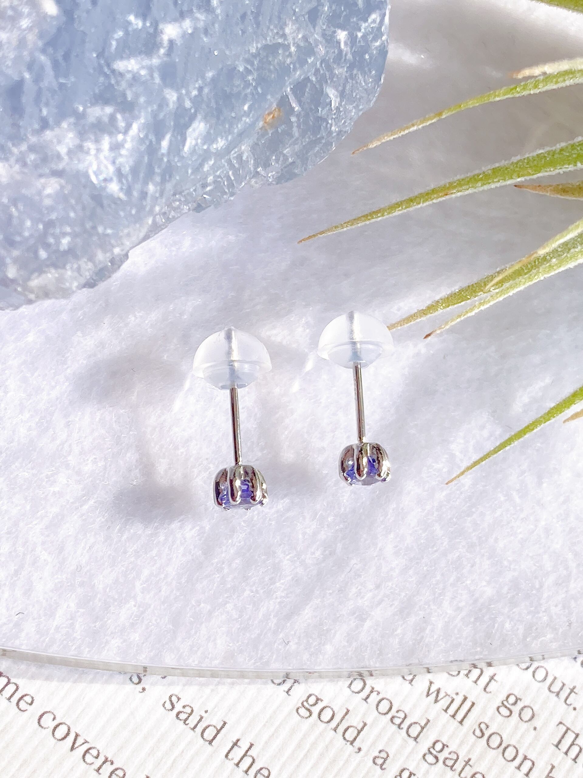 澄んだ青と、ほんのりと紫を帯びた色彩が美しい、タンザナイトのピアスです。